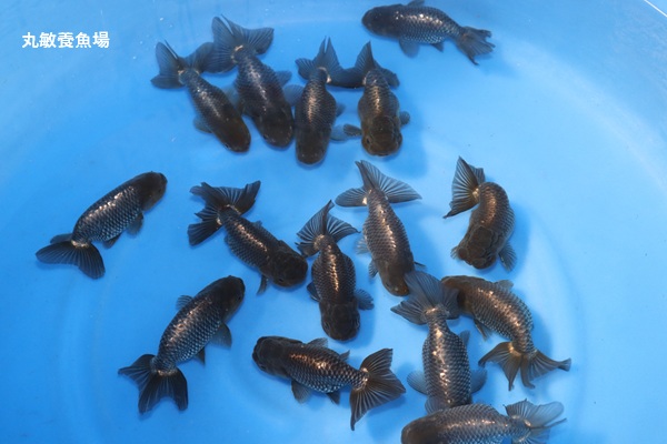 深見産(六鱗・青らんちゅう)。長尾産更紗和金。